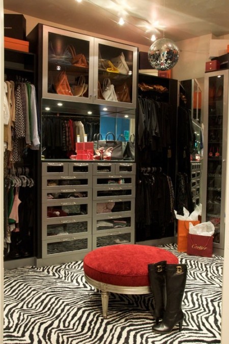 衣帽間是個相對獨立的空間,燈光考慮不可少。設計師建議,選用一個自然光色的吸頂燈就可以,最好別用射燈,因為射燈溫度比較高,衣帽間屬于私密空間,燈光設計沒必要太炫,選擇一個顯色性好的日光燈,使衣服的顏色最接近正常,方便主人選擇就可以。如果衣帽間的采光不好,在穿衣時對衣服的選擇會產生色差,同時也會感到空間有壓抑感。衣帽間還需考慮空氣的流通,以避免在潮濕季節發生蟲蛀、發霉現象,尤其是由衛生間改造成的衣帽間,在當初改造時最好不要動原有的排風管道,同時裝上排氣扇,讓室內空氣形成對流。