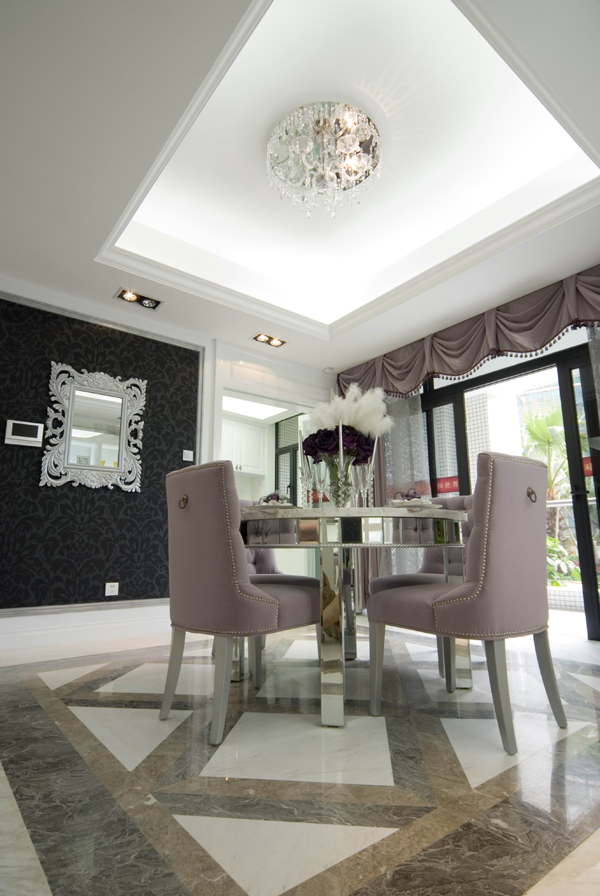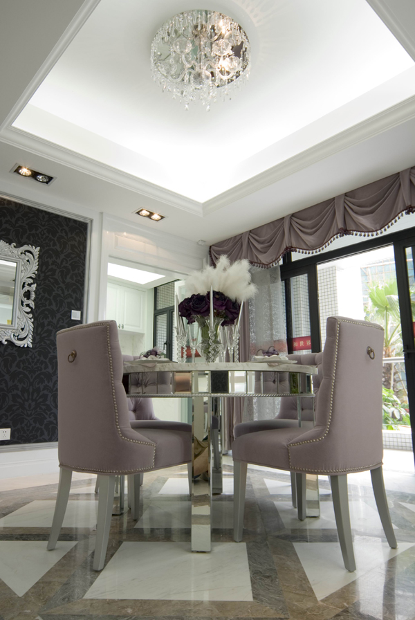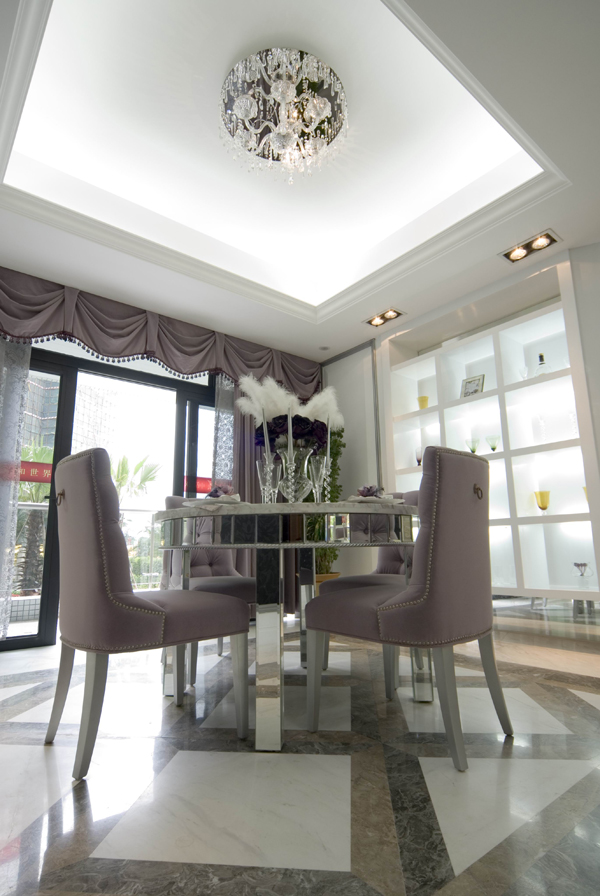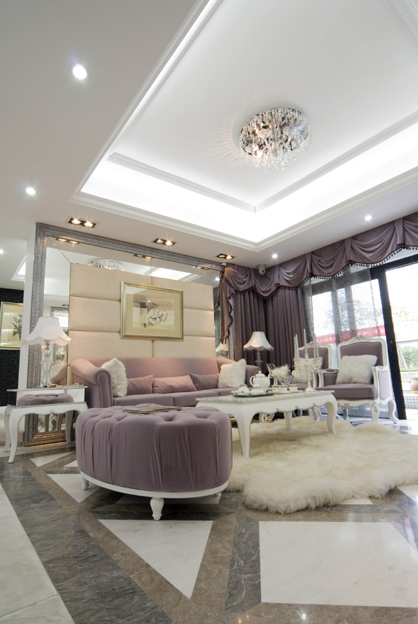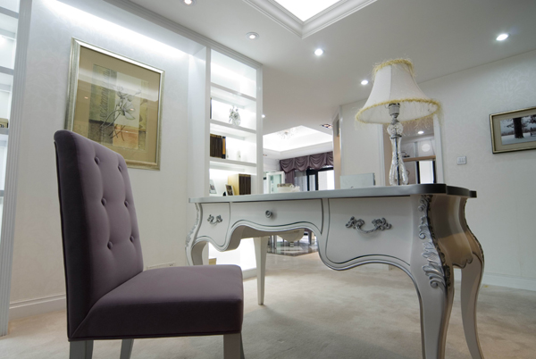 再結(jié)合華麗 古典的歐式家具.高貴的水晶吊燈,更顯出本示范位單的國際品位。希望使你置身于一個(gè)白色的王國里 ,成為童話里的主角。