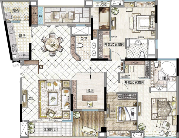 本設(shè)計(jì)理念來自于白色的王國。歐洲一個(gè)令人向往的國家,無論建筑到室內(nèi)裝飾元素都充滿著古典.高雅.的貴族氣派。本示范單位裝飾元素就是來源于這里的。從空間來說,以開放,明亮為主。當(dāng)你步進(jìn)室內(nèi),你就會感受到客廳 餐廳 書房的空間即獨(dú)立又共享。房間里的衣帽間開放處理,使空間便加實(shí)用 靈活。
