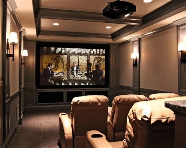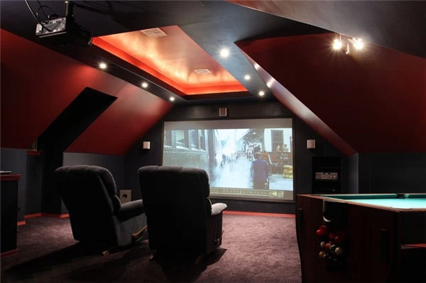 上海豪宅裝修中不可不炫酷的影視廳,家庭影院是要在家庭環境中搭建的一個接近影院效果的可欣賞電影享受音樂的系統,可讓家庭用戶在家欣賞環繞影院效果的影碟片、聆聽專業級別音響帶來的音樂、并且支持卡拉OK娛樂。想想也是蠻浮夸的!不過我家一定要有!