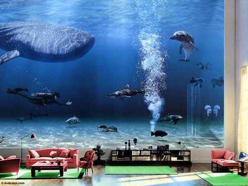 (下圖:比爾·蓋茨書房里巨大的“海世界”)