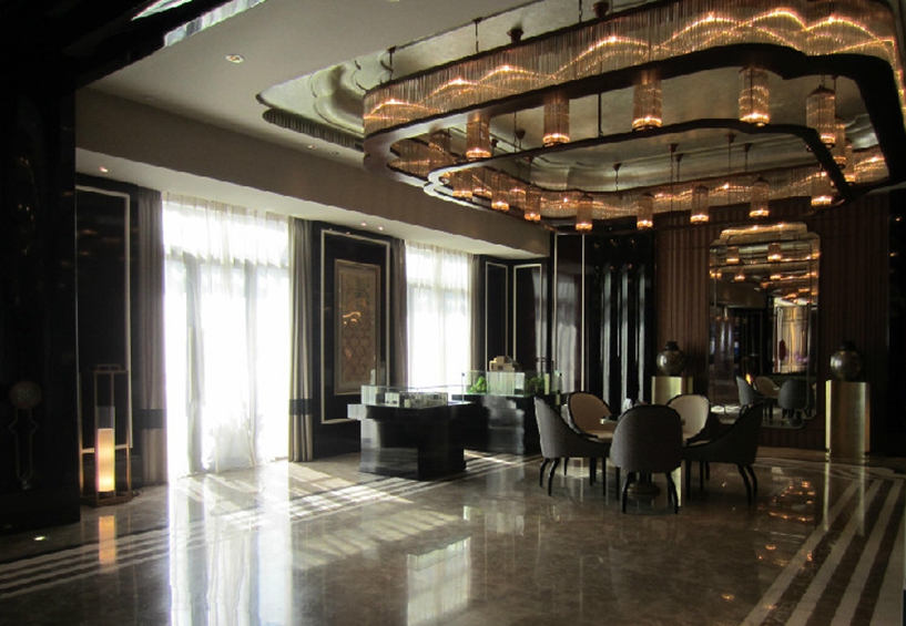 金山御景龍庭別墅裝修設計: 御景龍庭總建筑面積約23萬平方米,占地面積約12.88萬平方米。御景龍庭公寓由3幢25層和6幢18層的高層組成。整個別墅區總規劃有3聯、4聯、6聯共155套別墅,別墅是賴特草原風格,其特點是大坡頂、大面積落地窗、入戶回廊、多重露臺。