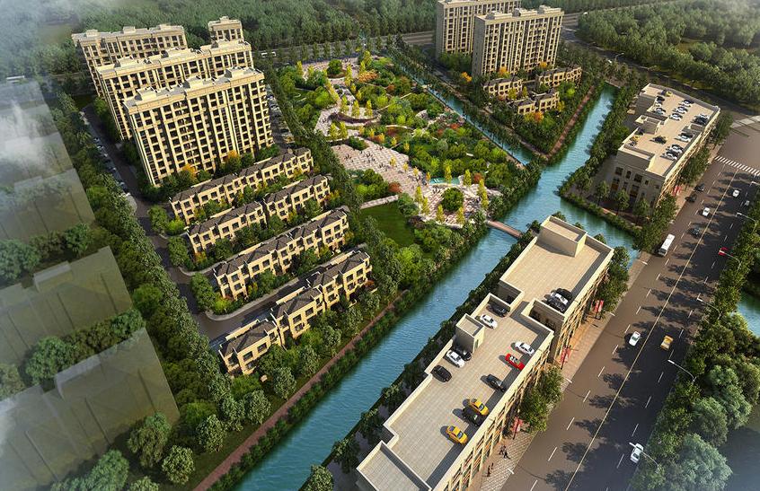 金山中銳龍灣1號別墅別墅裝修設計: 中銳龍灣1號主要以雙拼聯排別墅為主,輔以少量多層和小高層的高檔居住區。 建筑風格以新古典主義為主,景觀設計以東南亞風格為特色??v向天然河道擯河綠化帶貫穿小區,中心綠地結合主要橫向景觀大道使小區景觀與建筑有機結合在一起。